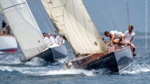 Usually we do all the classic regattas in the Med. The season starts with the Ladies Cup at St Tropez, then it’s Antibes, cruising during July and August, and then Cannes at the end of the season. Antibes is my favourite regatta, it’s the beginning of the season, everyone is excited, the yachts all look fantastic, perhaps there are some new faces out racing. As it is the beginning of the summer, we race in the sunshine and we can see the snow on the mountains behind us, it’s a fantastic place.