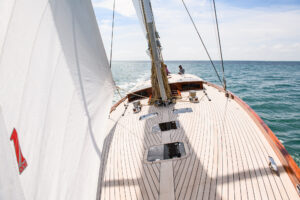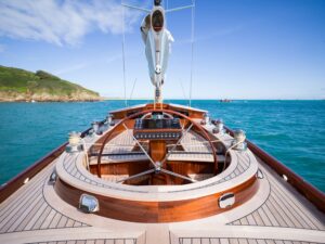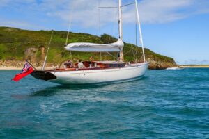 From her home port of Guernsey in the Channel Islands, Gwenhyfar II has previously cruised the UK and Ireland with her owner and friends. The versatility in the design of the yacht, allows her to be easily transitioned from cruising to racing as shown in her successful participation in classic yacht regattas in the UK and Channel Islands.