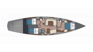 With two double cabins, a single navigator’s berth, and the option to have a double berth in the saloon, the Spirit 50 offers plenty of guest accommodation. Her open plan galley, saloon, and chart table facilitate social sailing and a team approach to life onboard. On deck, with all sail controls led aft, the Spirit 50 is designed to embrace the joy of being out on the water.