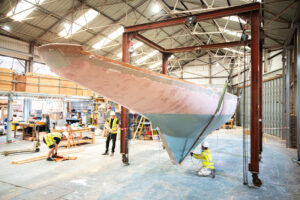 The Q Class commission is nearly ready for the hull to be rolled over. Read about the first phase of the project.