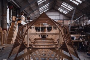 No timber is wasted, Sykes ensures every offcut is either resold in their onsite hobby shop or used to heat their offices and mills in wood boilers, sawdust is collected by local farms for livestock bedding. At Spirit Yachts, any unused wood is donated to local boatbuilding colleges and charity projects.